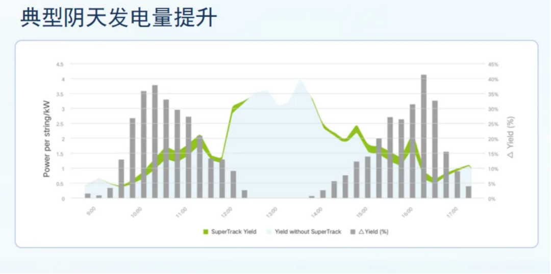 实证结果还显示,在典型阴天条件下,使用智能AI算法较对比组天文算法跟踪系统发电量增益达9.15%%,并且早晚时段发电量增益均较全天平均水平更高。