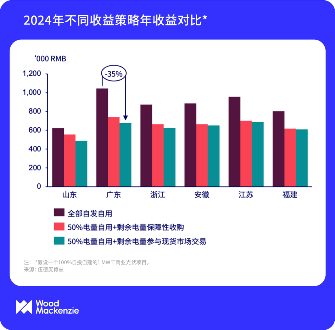 伍德麦肯兹预计,与参与电力市场化交易相比,全自用模式的收益最高可高出35%。长期来看,不断上涨的终端用户电价将凸显分布式光伏的项目经济性。在装机主要省份中,预计2050年全额自用所节约的电费成本最高可较2024年的水平增长50%。这一可观的成本优势,加之持续提升的投资回报率,将是推动分布式光伏未来蓬勃发展的关键驱动力。