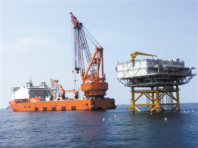 承担吊装作业的交通运输部上海救捞局“创力”号起重铺管船,总长198.8米、型宽46.6米,最大起吊重量3500吨,仅次于“蓝鲸2号”“蓝鲸1号”,排名国内第三。现场工程师介绍,此次作业的海上升压站模块,是一个总重达2977吨的庞然大物,将其吊装就位,“创力”号仅用时40分钟,精度达厘米级。由此,保证了该风电场8月15日首台风机并网;预计2020年12月30日,全部73台机组并网发电。