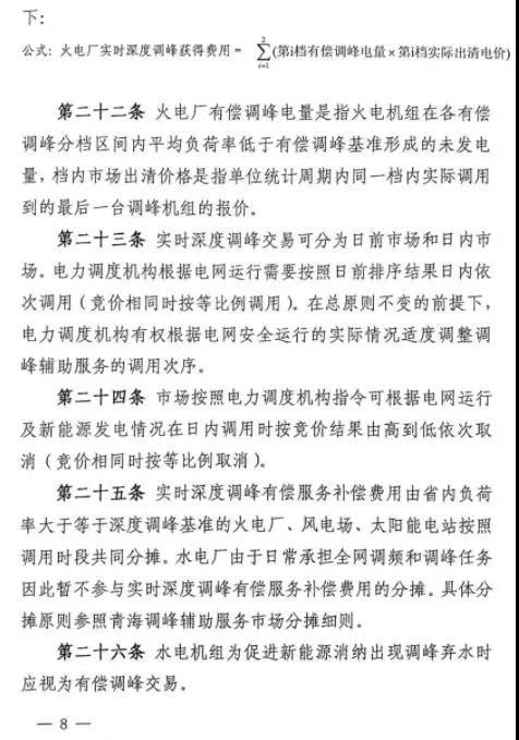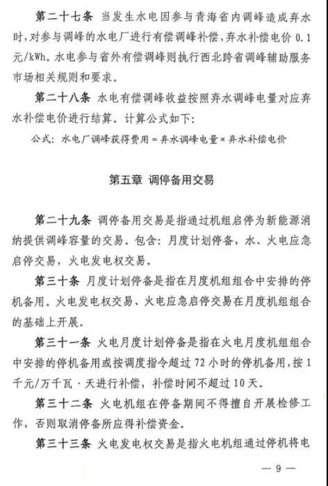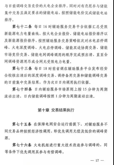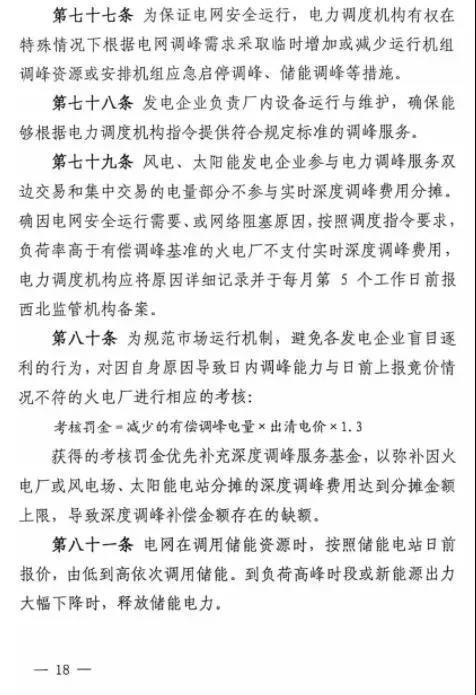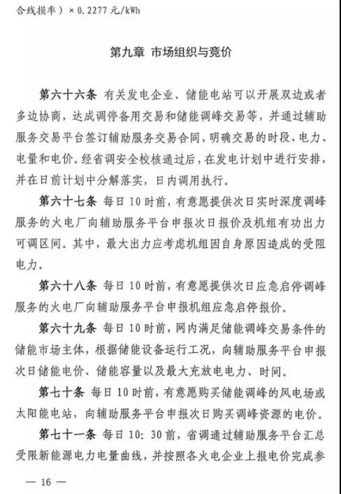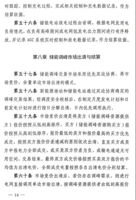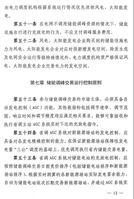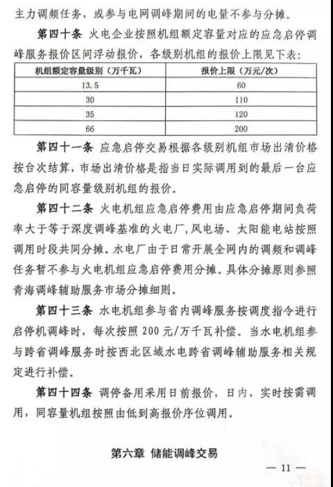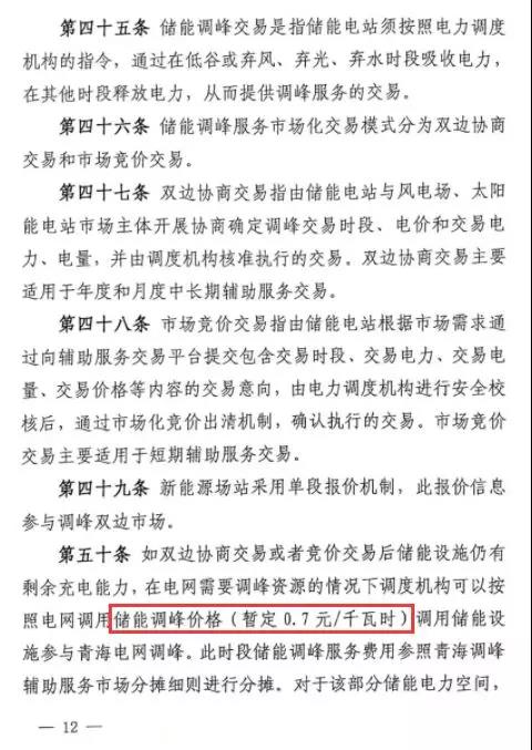 第五十条 如双边协商交易或者竞价交易后储能设施仍有剩余充电能力,在电网需要调峰资源的情况下调度机构可以按照电网调用储能调峰价格(暂定0.7元/千瓦时)调用储能设施参与青海电网调峰。此时段储能调峰服务费用参照青海调峰辅助服务市场分摊细则进行分摊。对于该部分储能电力空间,由电力调度机构根据系统运行情况优先消纳风电、太阳能发电。