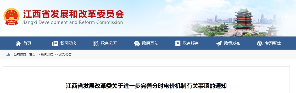 江西省发展改革委关于进一步完善分时电价机制有关事项的通知