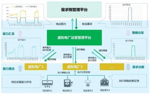 虚拟电厂专注于电力市场博弈,其核心使命是参与现货套利和提供辅助服务。在现货套利方面,虚拟电厂凭借其快速响应能力和精准的市场预测,能够在电力现货市场中捕捉价格波动机会,实现盈利。例如,在安徽电力市场,某虚拟电厂曾在 15 秒内通过合理调整电力输出,赚取 12 万元。在提供辅助服务方面,虚拟电厂可以为电网提供调频、调压等服务,获得相应的补偿,如调频补偿为 0.5 元 /kW。其典型场景包括跨省绿电交易,促进清洁能源的跨区域流通;以及车网互动(V2G),实现电动汽车与电网之间的能量双向流动。