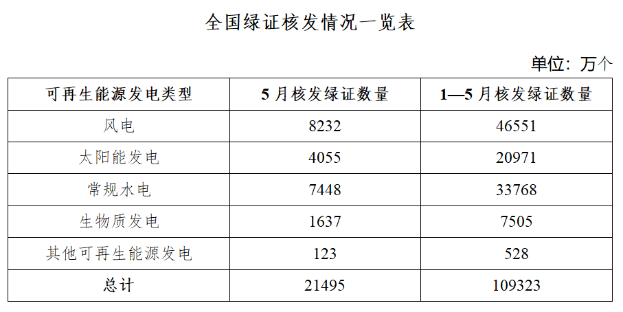 6月26日,国家能源局发布2025年5月全国可再生能源绿色电力证书核发及交易数据。