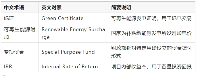 关键词解释:可再生能源电价附加(Renewable Energy Surcharge):国家通过电网公司向用户收取的额外电价,用于支持新能源发展。