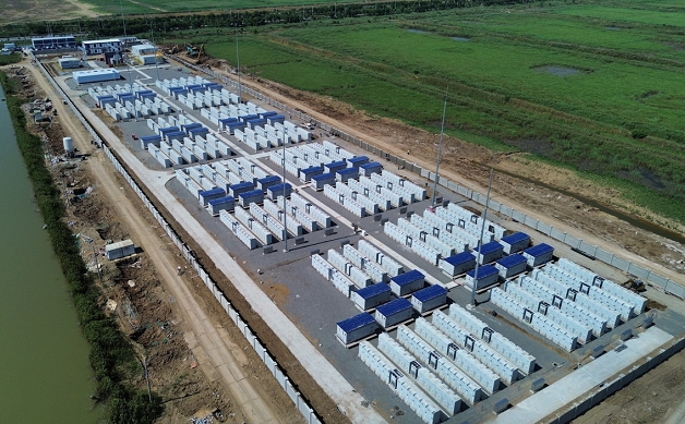 作为目前国内规模最大的采用组串式储能系统方案建设的共享储能电站工程,三峡滨海200MW/400MWh储能电站的总储能系统由46个储能单元组成,共计包括46台箱式变压器和1080台储能一体柜,并配套建设110kV升压站及送出线路。