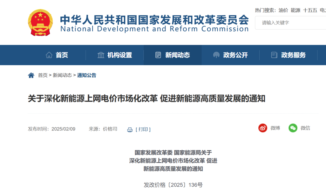 2025年2月,发改委发布136号文,全面推进新能源上网电价市场化。