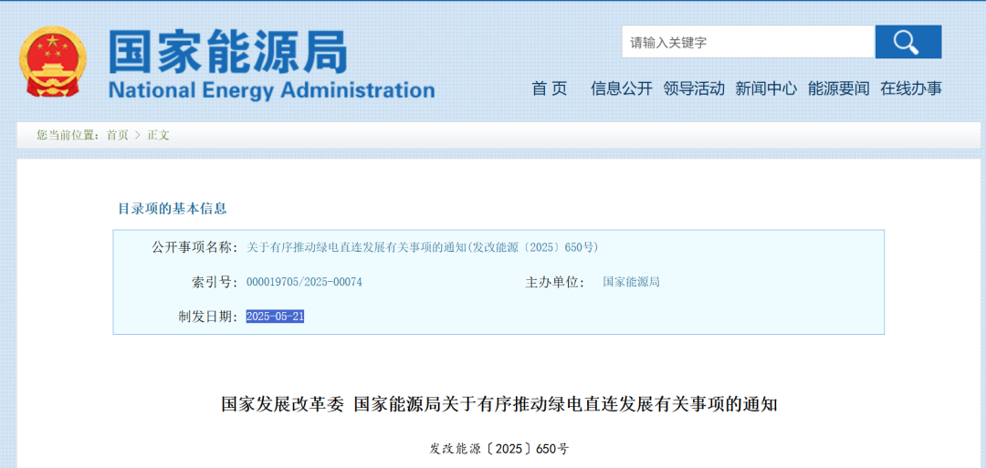 2025年5月,《关于有序推动绿电直连发展有关事项的通知》落地。