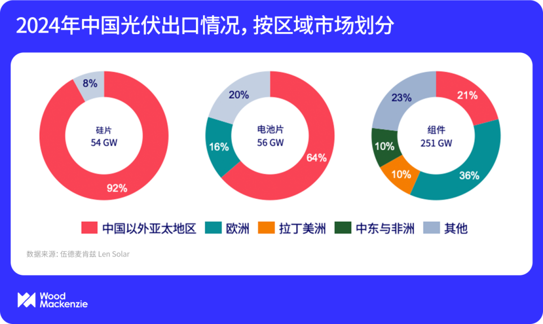 在政治与贸易双重压力下,地理多元化成为新的出海战略核心。新兴市场逐渐替代传统市场成为中国光伏出口新的增长点,中东非与拉美地区进口中国组件占比增长至近20%。