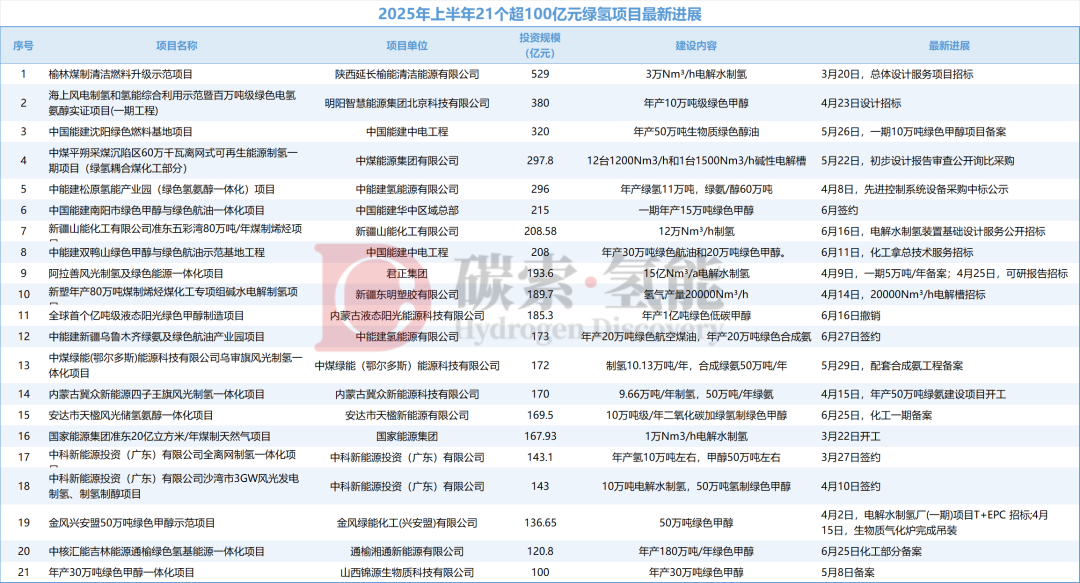 2025已过半,全国绿氢项目“年中总结”如期而至。