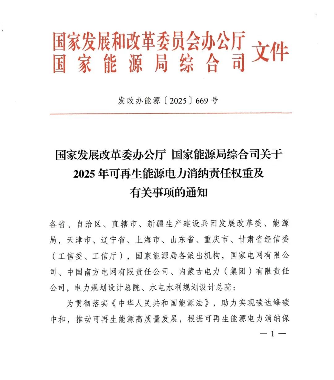 近日,国家发改委、国家能源局印发《关于2025年可再生能源电力消纳责任权重及有关事项的通知》,下发2025年、2026年可再生能源电力消纳责任权重和重点用能行业绿色电力消费比例。