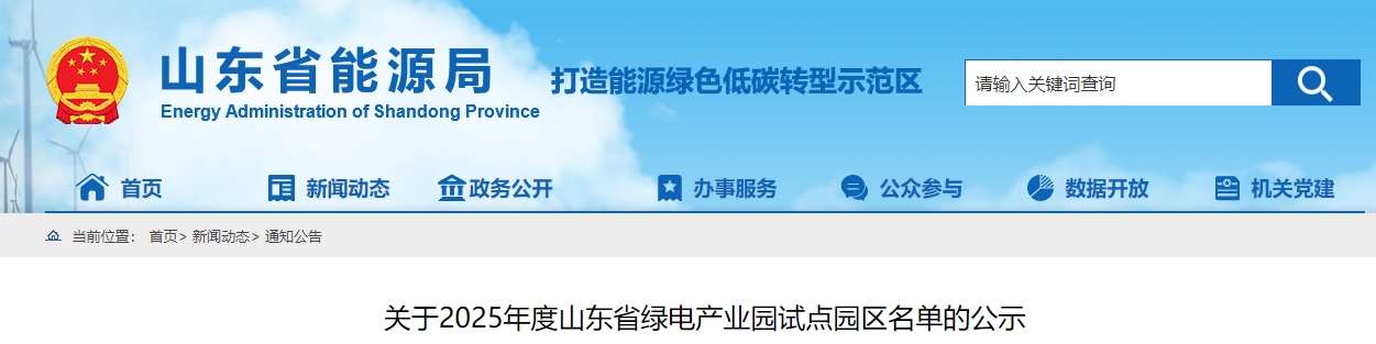 关于2025年度山东省绿电产业园试点园区名单的公示