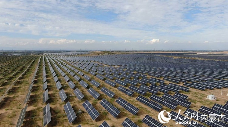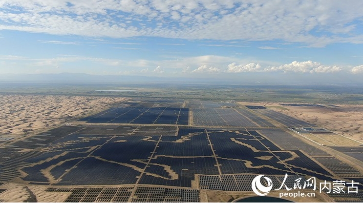 内蒙古鄂尔多斯市达拉特旗光伏基地,位于库布其沙漠中段。人民网 孟佳澍摄