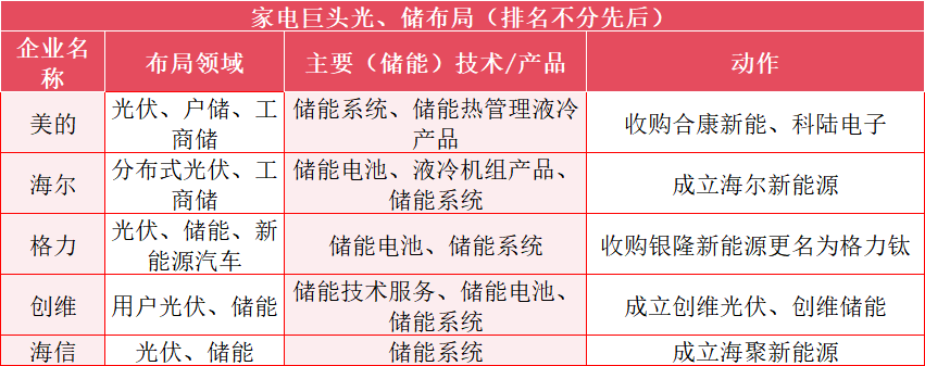 据了解美的、海尔、格力、创维、海信等家电龙头企业,早已通过多种方式积极布局光伏、储能等新能源相关领域。
