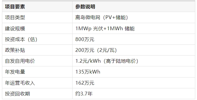 注:数据基于海南三沙市某离岛项目测算,具体数据受日照小时、电价政策影响较大。