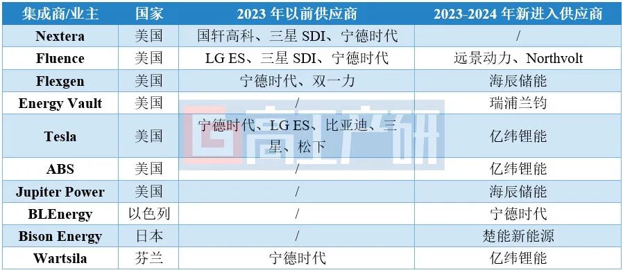 2024年直接出口占总出口35%,主要指:1)国内储能锂电池直接供货海外集成商,以欧美集成商为主,如Nextera、Fluence、Flexgen、Tesla、Jupiter Power、Wartsila等企业;2)配套自身系统出口,如宁德时代、比亚迪储能、海辰储能等企业出口系统产品。
