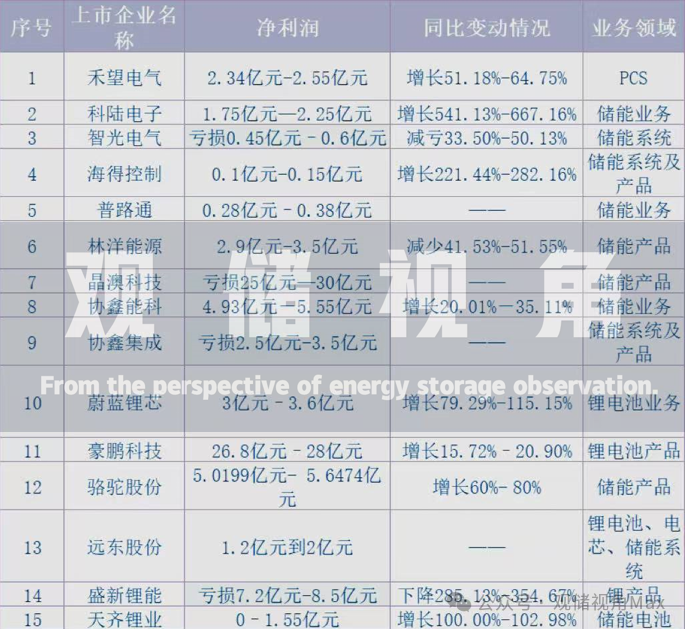 从已披露的15家储能上市企业2025年半年业绩预告看,行业呈现明显分化:9家企业净利润同比上升,4家企业亏损,2家扭亏为盈。