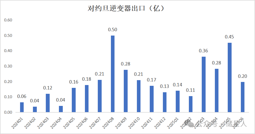 2025年1月-6月逆变器出口同比显著增长的市场: