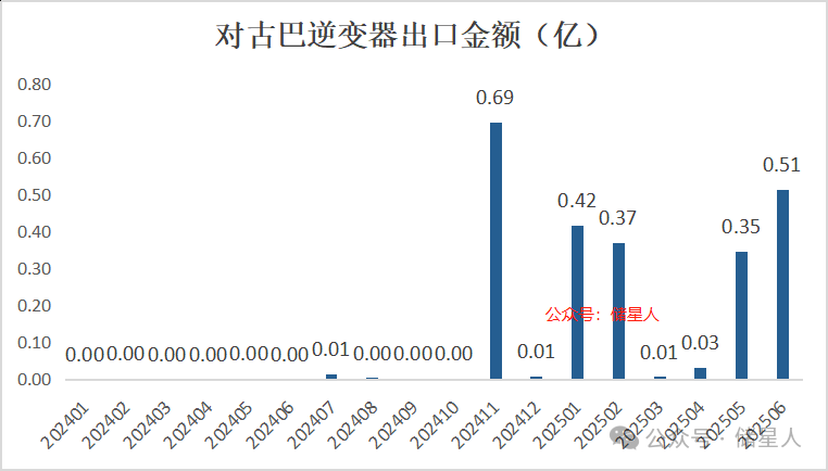 对古巴2025年1-6月出口较2024年同比增长很多倍!