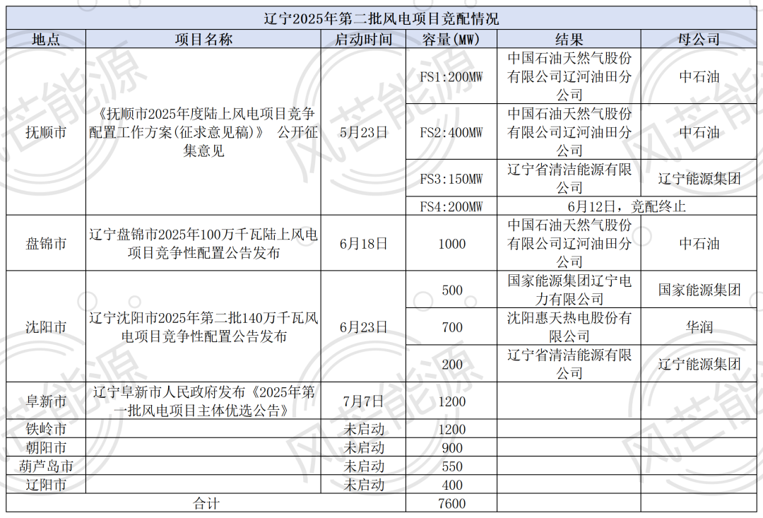 目前,沈抚改革创新示范区和大连市瓦房店市均已完成风电项目竞配,业主涉及京能和中广核。
