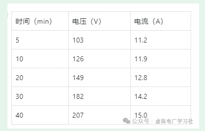 同时打开开关,记录 0-50 分钟内的电压电流消耗;