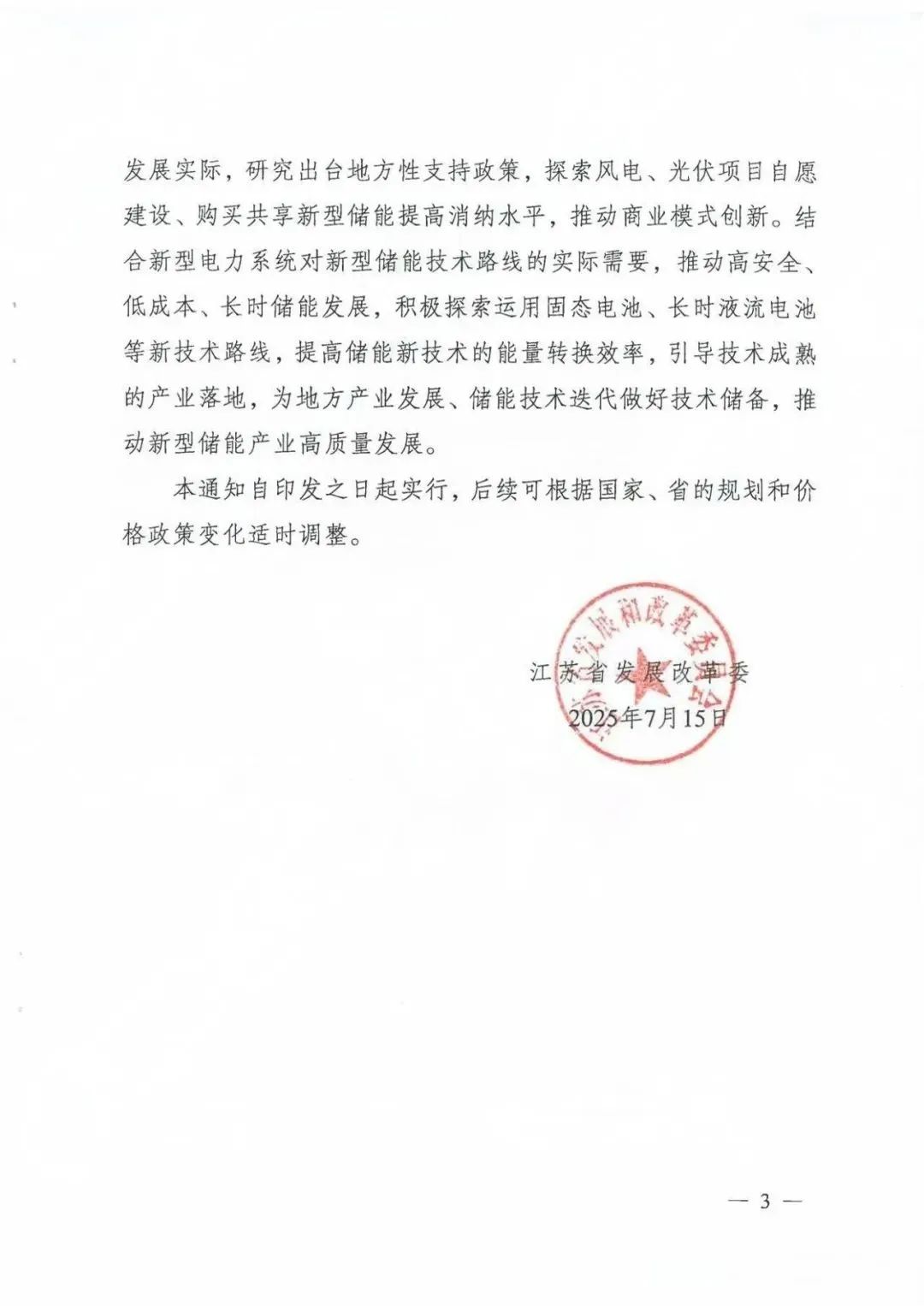 文件还提及鼓励创新。各设区市发展改革委可结合本地应用场景和发展实际,研究出台地方性支持政策,探索风电、光伏项目自建设、购买共享新型储能提高消纳水平,推动商业模式创新。结合新型电力系统对新型储能技术路线的实际需要,推动高安全低成本、长时储能发展,积极探索运用固态电池、长时液流电池等新技术路线,提高储能新技术的能量转换效率,引导技术成熟的产业落地,为地方产业发展、储能技术迭代做好技术储备,推动新型储能产业高质量发展。