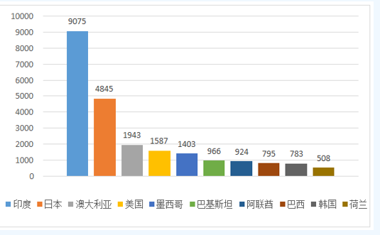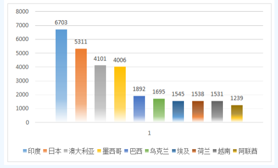 出口额超过亿美元的国家/地区达到16个,出口量超过1GW的国家/地区也达到10个。其中前十名国家和地区中亚洲国家有3个(越南、日本、印度),欧洲国家4个(西班牙、葡萄牙、荷兰、乌克兰),拉丁美洲国家2个(巴西、墨西哥),大洋洲为1个(澳大利亚)。