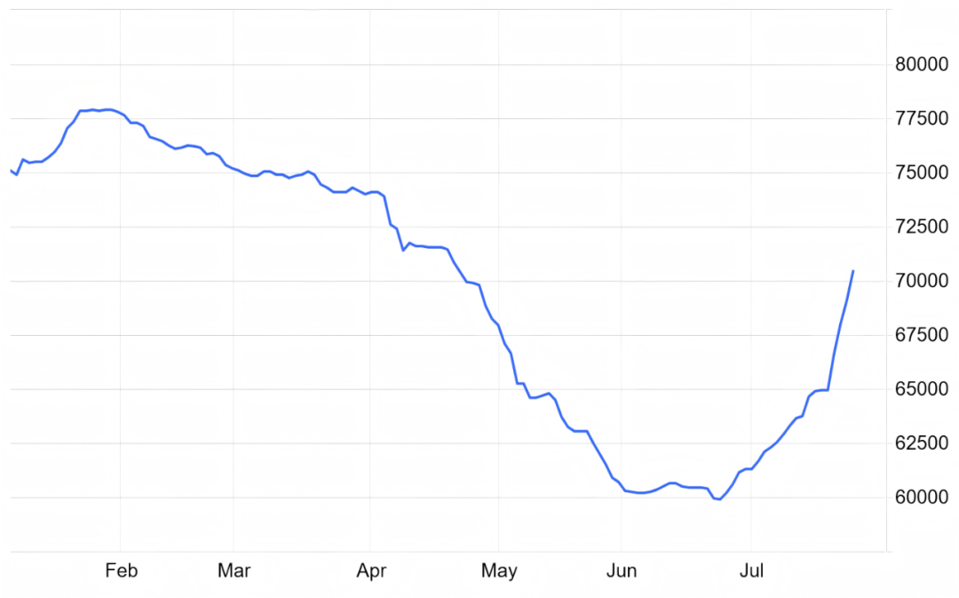 据CESA储能应用分会产业数据库跟踪统计,国内电池级碳酸锂均价从2024年5月开始下行,从10万元/吨以上下行至8万元/吨以下,9月触底后略有回弹。2025年一季度趋于稳定,但4月-6月持续下跌,从7.41万元/吨跌至6万元/吨以下触底,进入7月后价格快速回弹。