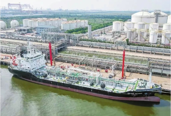 7月23日,一艘装载5000吨国际可持续发展与碳认证(ISCC EU)绿色甲醇的货轮从天津港保税区临港石化码头启航驶往新加坡,标志着全国首单规模化绿色甲醇外贸出口业务圆满完成。