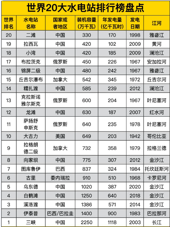 总装机6000万-7000万千瓦,相当于目前在运的全球前5大水电站加在一起的装机规模——三峡水电站(2250万千瓦)+伊泰普水电站(1400万千瓦)+溪洛渡水电站(1386万千瓦)+白鹤滩水电站(1250万千瓦)+乌东德水电站(1020万千瓦)。