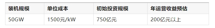 50GW(即5000万kW)装机对应的初始市场规模约750-1000亿元;