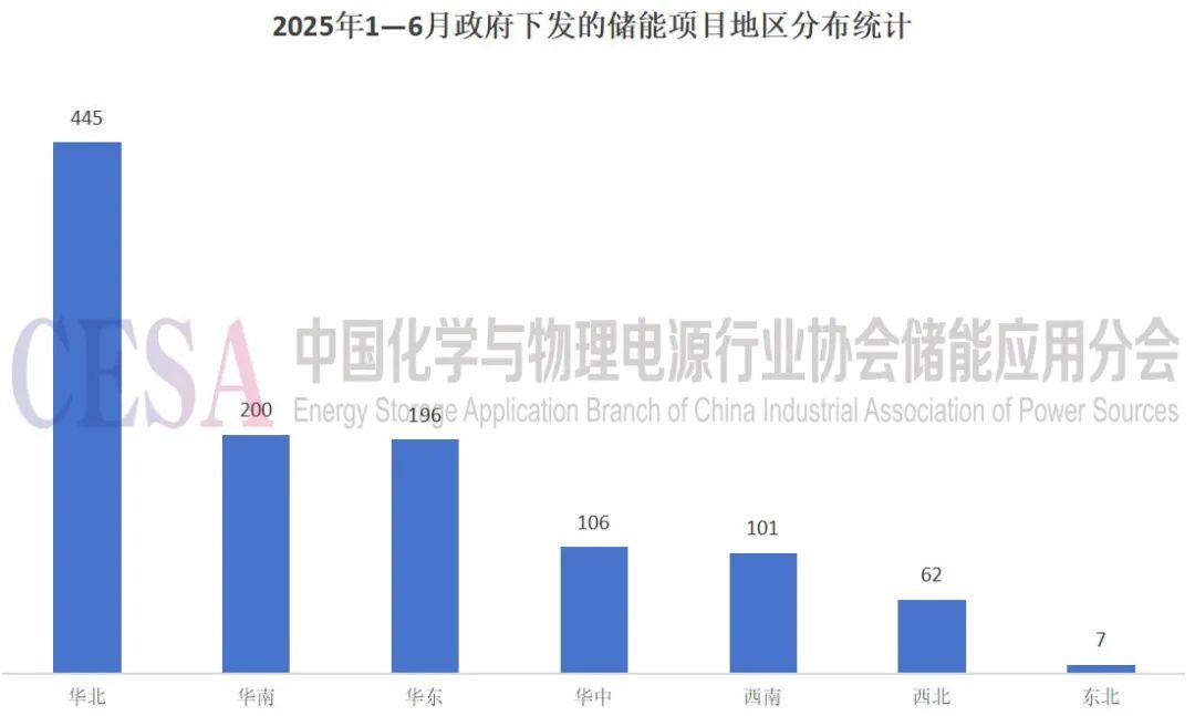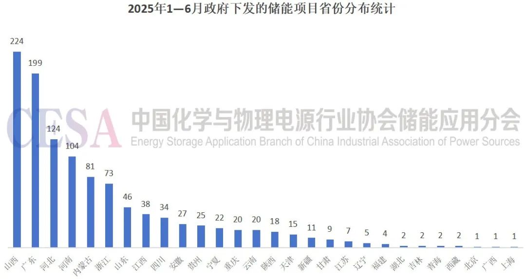 2025年1—6月,我国政府下发的储能项目呈现显著的区域集聚特征,地区分布与省份分布均体现出鲜明的差异化趋势。