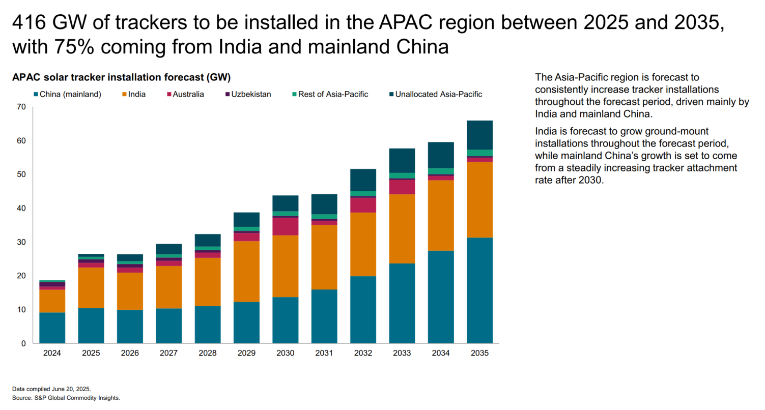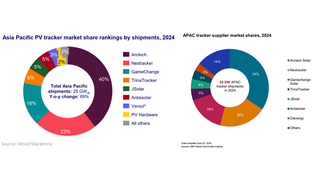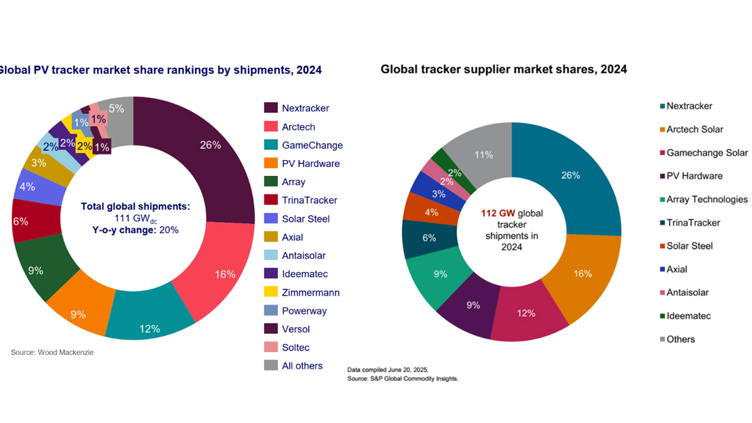 近期,全球多家第三方机构发布2024年度跟踪支架市场报告。其中,标普全球(S&P Global)和伍德麦肯兹(Wood Mackenzie)报告皆显示2024年全球跟踪支架年度出货量首次突破百吉瓦大关,同比增长约20%。