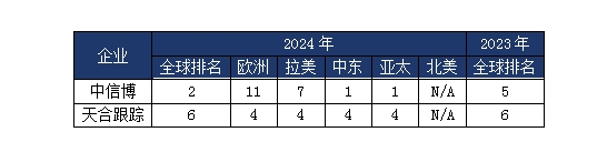 2024年全球跟踪企业出货量排名(左:伍德麦肯兹报告;右:标普全球报告)