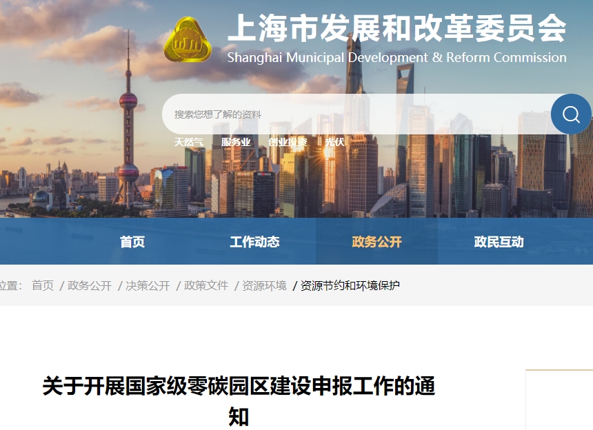 7月29日,上海市发改委发布《关于开展国家级零碳园区建设申报工作的通知》,支持上海市有条件、有意愿的园区积极申报建设国家级零碳园区。