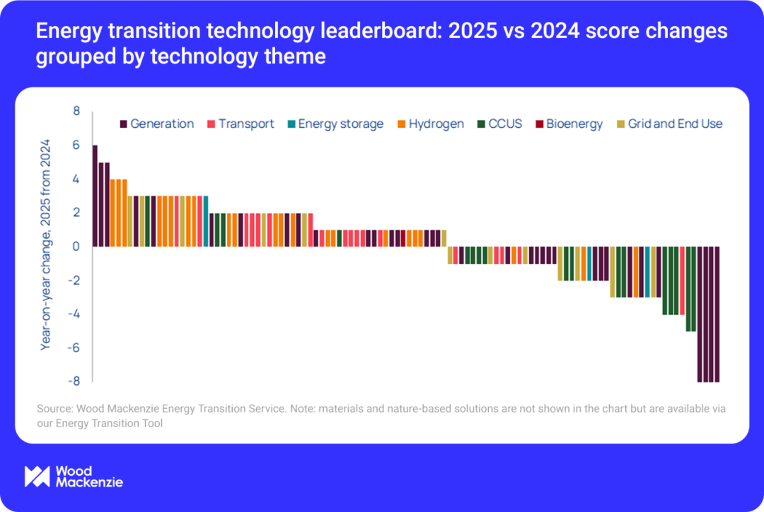 伍德麦肯兹(Wood Mackenzie)最新发布《新技术展望报告2025》(第五版)将评估范围扩大至260项技术,并全球综合排名的基础上,新增美国、中国和欧洲区域评分。报告从14个不同组别切入,通过六项指标对技术展开评估,具体包括:技术成熟度、变革速度、碳减排成本、碳抵消潜力、政策支持度以及技术依赖性。核心观点摘录如下。