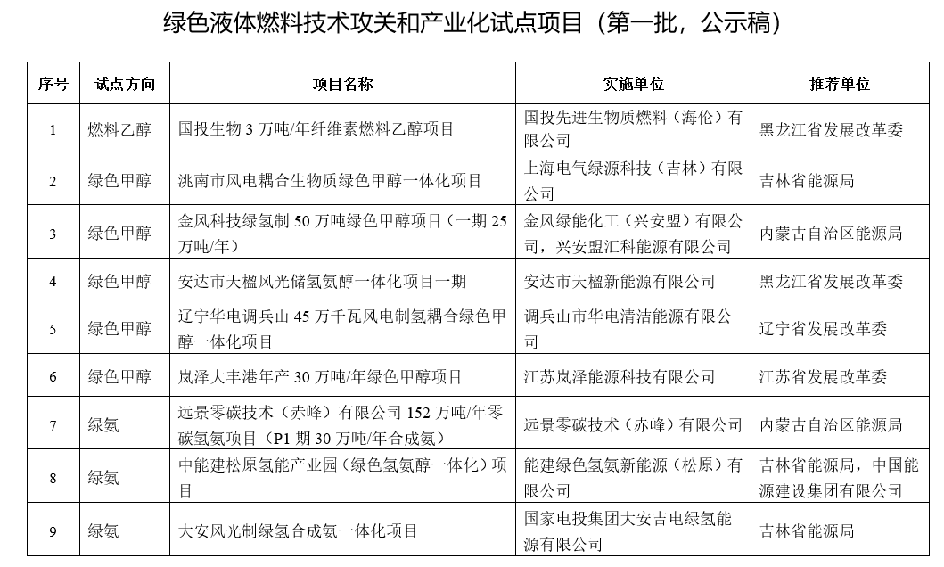 8月7日,国家能源局发布《国家能源局综合司关于公示绿色液体燃料技术攻关和产业化试点项目(第一批)的通知》。