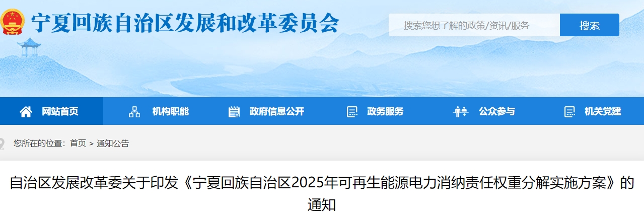 自治区发展改革委关于印发《宁夏回族自治区2025年可再生能源电力消纳责任权重分解实施方案》的通知