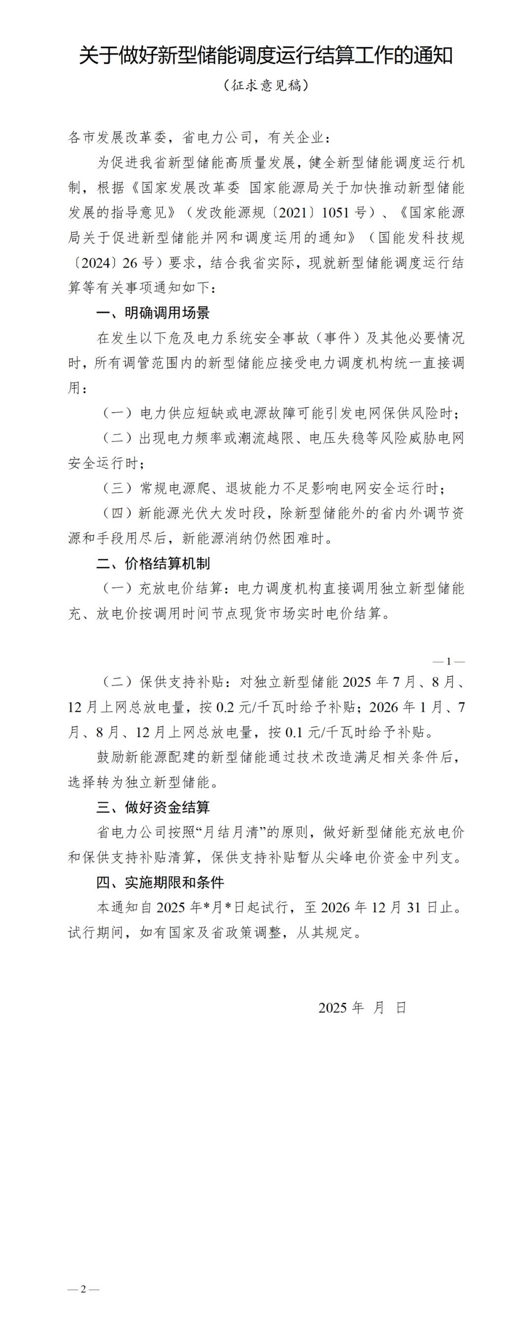 8月7日,安徽省能源局发布关于公开征求《关于做好新型储能调度运行结算工作的通知(征求意见稿)》意见的公告。