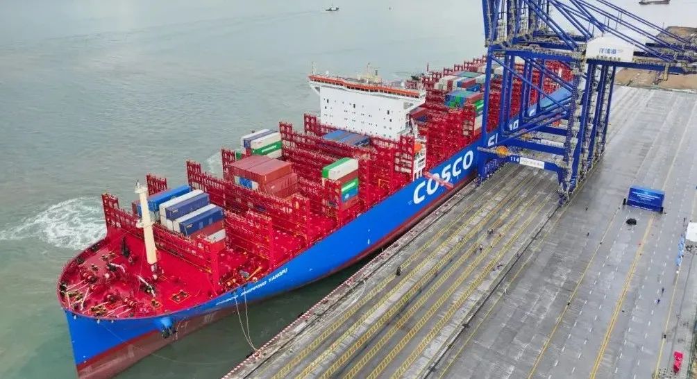 图丨我国首艘大型甲醇集装箱船“中远海运洋浦”轮