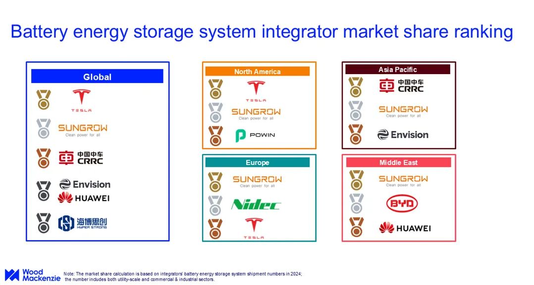 近日,全球知名咨询机构Wood Mackenzie发布了《2025年全球电池储能系统集成商排名报告》,报告反映了日益激烈的区域竞争和不断变化的市场动态。