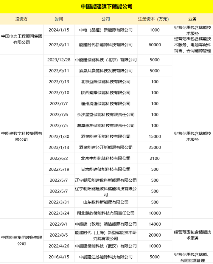2022年开始成立多家子公司,将储能业务独立成板块。