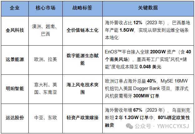 尽管2023年四巨头海外装机仅占全球新增市场9.7%,但其增速达45%(国际巨头平均12%),印证中国模式的全球竞争力。未来决胜关键在于:能否将中国超大规模风电开发经验(如10GW级基地建设、高比例风光并网)转化为可配置的全球化方案,并在ESG、碳规则等领域赢得话语权。全球化的真正角逐,才刚刚拉开序幕——中国企业正从“参与者”向“引领者”跨越,重塑全球能源转型的底层逻辑。