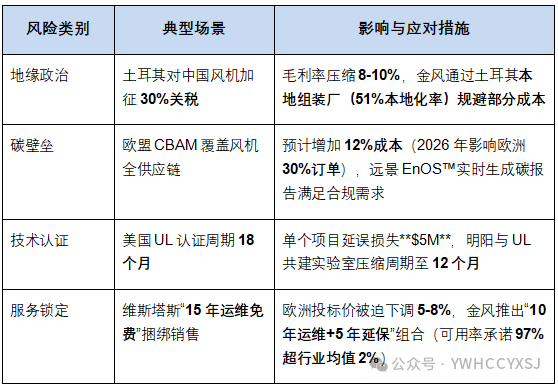 • 供应链纵深:远景印度工厂60%本地采购规避30%关税,联合塔塔集团共建叶片材料实验室,寿命从20年延至25年;金风土耳其组装厂(本地化率51%)降低地缘关税冲击(毛利率压缩**8-10%**应对土耳其临时加税)。