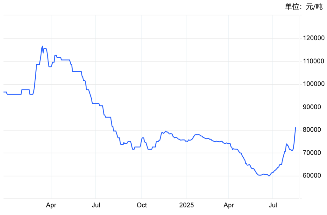 在市场爆单和产能扩张的同时,8月11日-8月13日,电池级碳酸锂均价连续暴涨,单日暴涨超3000元/吨,目前已突破8万元/吨。截至8月13日,电池级碳酸锂均价涨至8.1万元/吨,创2024年8月以来近一年的价格最高记录。