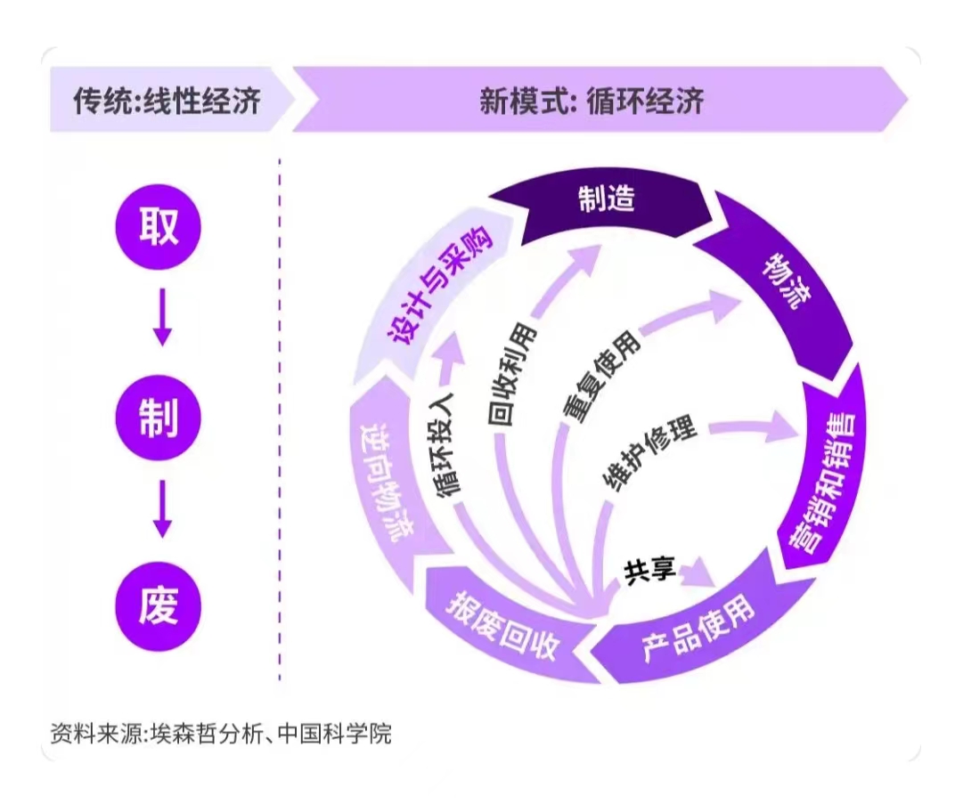 循环经济,是以“取—制—取—制”的循环生产模式替代传统的“取—制—废”线性增长模式,从价值链的整体视角出发,建立价值回收系统,最大化提升产品及资产的变现效率,并获得持续收益的一种新增长模式。它是实现可持续发展的必经之路,更是企业耕耘创新增长的新天地。