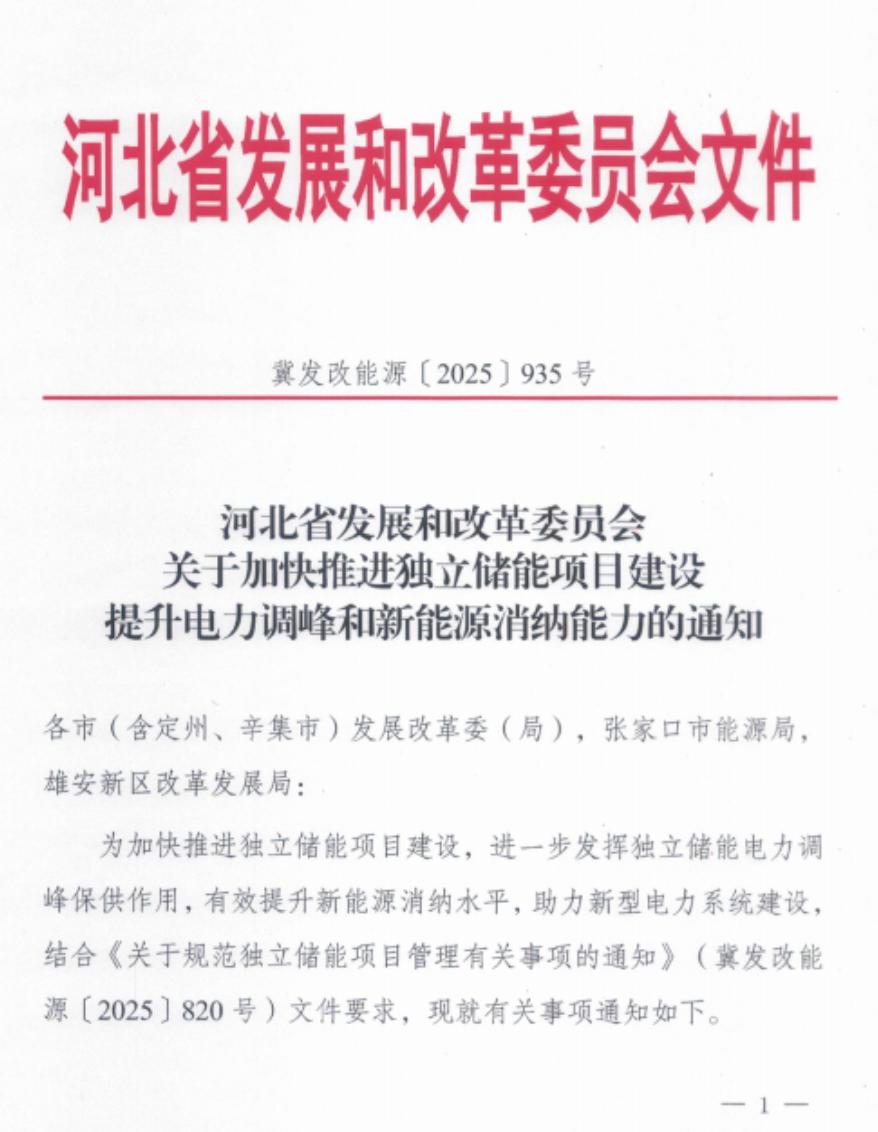 近日,河北省发改委发布《河北省发展和改革委员会关于加快推进独立储能项目建设提升电力调峰和新能源消纳能力的通知》,明确加快建设进度、统筹规划布局、梳理滞后项目等。