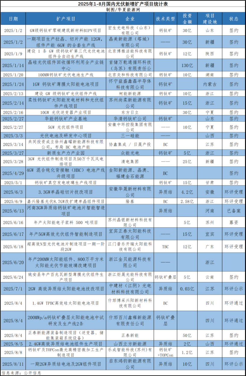 国内:新兴企业是扩产主力,钙钛矿技术最受青睐