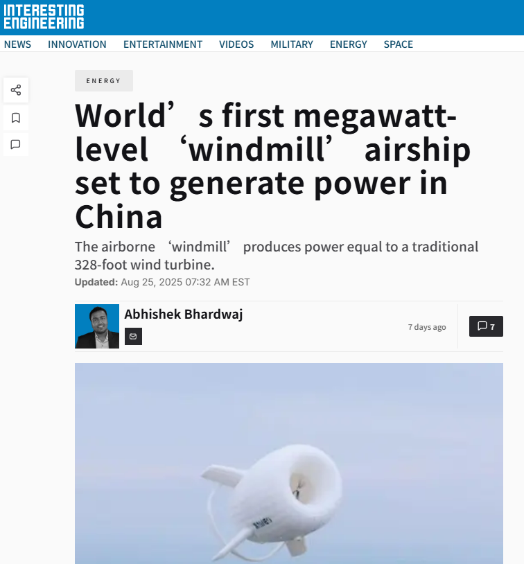 未来,成千上万座“天空电站”或将组成悬浮矩阵,在云端构建起空中绿色电力网络,从而为 “碳中和”目标提供新的解决方案。