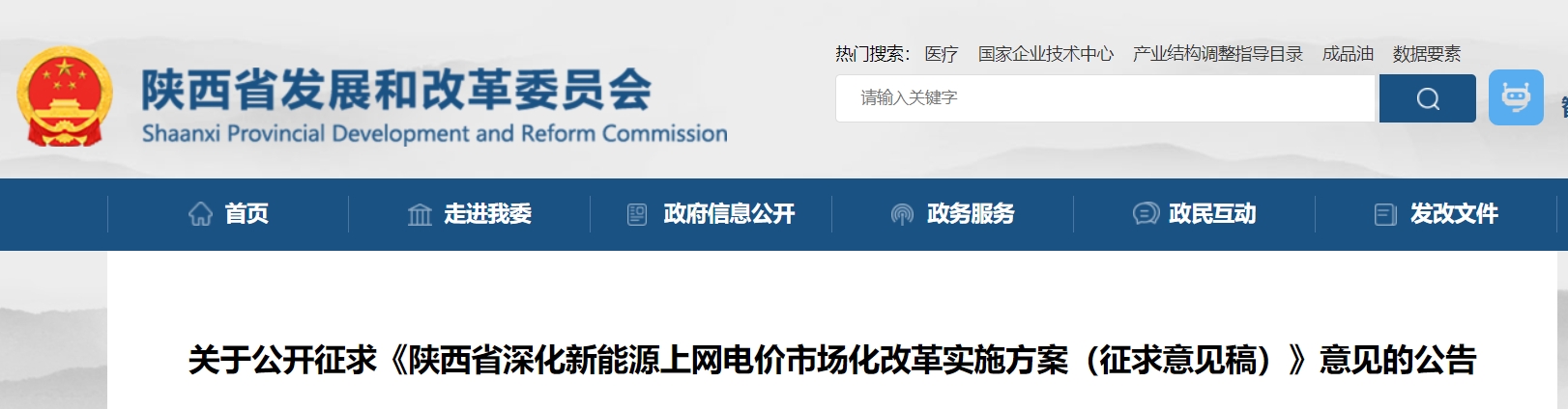 根据《国家发展改革委 国家能源局关于深化新能源上网电价市场化改革 促进新能源高质量发展的通知》(发改价格〔2025〕136号)精神,结合我省实际,我们起草了《陕西省深化新能源上网电价市场化改革实施方案(征求意见稿)》,即日起向社会公开征求意见,欢迎社会各界人士积极建言献策,提出宝贵意见。