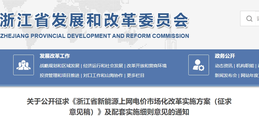关于公开征求《浙江省新能源上网电价市场化改革实施方案(征求意见稿)》及配套实施细则意见的通知